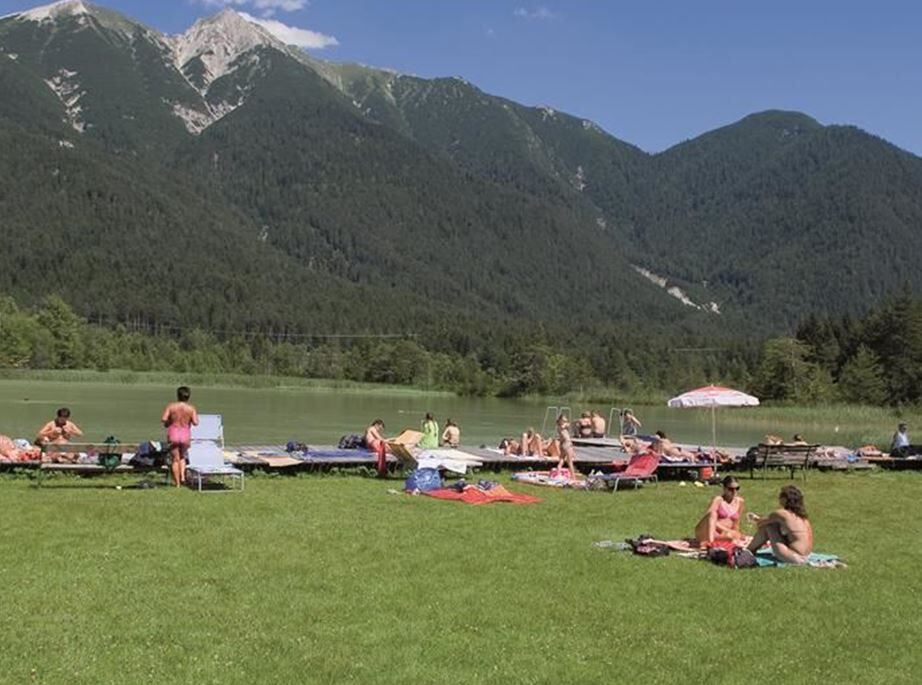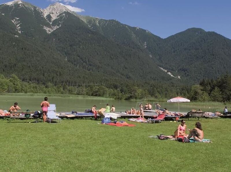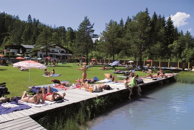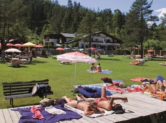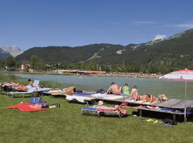 Liegewiese, Strandcafe, Freizeitsportgeräte, Umkleidekabinen, Sonnenterasse.